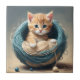 "Cozy Cuddles: The Kitten's Wooly Retreat" Ceramic Tile