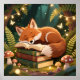 Cozy Fox Sleeping on Books Whimsical Forest Litera Poster