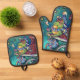 Cozy Frog Christmas & New Year Card Oven Mitt & Pot Holder Set
