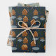 A cozy illustrated wrapping paper sheet set featuring charming gingerbread-style houses, pine trees, and soft decorative details on a light background.