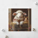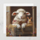 Cozy Sheep and Rabbit in Barn with Flowers Holiday Card
