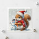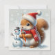 Cozy Squirrel with Snowman and Santa Hat Holiday Card
