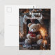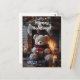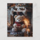 Celebrate the magic of the season with this adorable design featuring a cute teddy bear sitting in front of a cozy, glowing fireplace, holding a beautifully wrapped gift box. The soft lighting and warm tones create a festive ambiance, while the cheerful text that is customizable above adds the perfect seasonal charm.