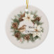 Cozy Warm Christmas Poinsettia Pine Cones Bird Ceramic Ornament