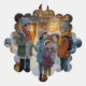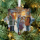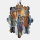 Cozy winter cabin in the woods, watercolor illustration style, soft textured paper effect. Snow-covered pine trees surrounding a rustic wooden log cabin with warm, glowing lights from the windows, garlands, and subtle Christmas decorations. In front of the cabin, a happy family of four (father, mother, one son, one daughter), wearing winter jackets, scarves, and beanies. They are smiling, interacting warmly, holding mugs of hot cocoa, and carrying gift boxes. Gentle falling snow, soft ambient light, golden evening glow from the cabin windows, and smoke from the chimney. Warm, nostalgic, peaceful Christmas atmosphere. Soft pastel colors, detailed watercolor brush strokes, high-resolution artwork, cozy holiday mood.