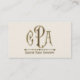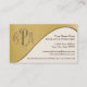 PAPER: Shown on pearl paper, which has a soft luxurious shimmery finish. COLOR PALETTE: Gold metal look with soft cream tan background and white text. DESIGN COLLECTION: A simple, classy, clean lined, modern and yet classic and upscale business card design, graphically designed by Audrey Jeanne Roberts. A sweeping dramatic curve sets apart the CPA 3d style raised appearance monogram style logo on a faux gold metallic looking background. Your accounting firm name, information and your name are easily personalised using the custom template field. On the reverse side is a strikingly elegant repeat of he CPA logo with "Certified Public Accountant" below a printer's ornament style dividing line. You can change the background to any colour using the customise it button and selecting "edit" button, drop down menu select "background" and then select your colour. You can also change the text colour in similar fashion.