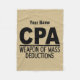 “Weapon of mass deductions”. Using the "customize it" function, you can change the background color of this item if you wish. See my store for more items with this design.