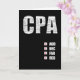 Customise this congratulations card for  someone who has passed the CPA test. You can check off the parts they have passed if they pass one or more, and finally when the whole test is passed, marked it all as completed!   This Black and white card stands out, with the initials CPA filled with congratulations. The 4 parts are Auditing (AUD), Business Environment & Concepts (BEC). Financial Accounting & Reporting (FAR). and Regulation (REG).