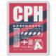 Copenhagen CPH Airport boarding pass and Danish flag colours, luggage tag style design for explores and travel lovers.