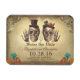 Old gothic save the date magnet with cute dead skull couple.