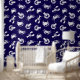 Stylish navy blue wallpaper with big white weathered look crabs and lobsters. Perfect for a beach bar, restaurant, beach house, cabin or cottage. Cool coastal decor. You can change the background colour from navy blue, to whatever suits your space.