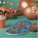 Dozens and dozens of pink crab apples dot a vivid blue sky, a lovely reminder of a crisp fall day. These unique paper plates will make any event special. Custom napkins and even custom brownies to go on the plates are available.