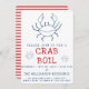 NewParkLane - Summer Crab boil Party Invitation, with a cute hand drawn indigo blue crab line illustration. A fun theme for a summer party or your 4th of july celebration with friends and family! On the backside a fun nautical red striped pattern.