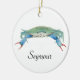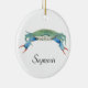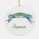 A watercolor painting of a lovely blue claw crab adorns this customisable ornament!