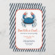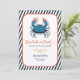 A summer-theme invitation with a blue crab and a blue and white stripe background. (Vectors by Vecteezy). The card is easy to customise with your wording, font, font colour and paper shape options. Not exactly what you're looking for? All our products can be custom designed to meet your needs at no extra charge. Simply contact us at askcottonlamb@gmail.com. Coordinating products available: Just ask us!"