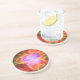I'm not sure how much moisture these will soak up, haven't had a chance to try them out, but they look good and I like the cork backing. The printing is fine ~ and really looks cool with an artisan's hand made "Hurricane Martini" glass sitting on top of my painting (on the coaster) in my studio.