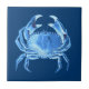 Crab Sea Life Print, Indigo Blue and White Ceramic Tile