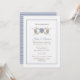 Having a crab or seafood rehearsal dinner? Here's a fun blue and white coloured crab theme invitation that will fit right in. Two tan crabs holding a simple blue heart ... text has both script for names and dinner plus easy to read fonts for the details. Invite text is framed with a light blue outer shell. Back is a simple blue and white stripe pattern.