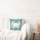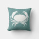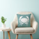 part of the ocean themed decor CRAB WHITE on teal blue pillow on one side and teal and white strip on back.
