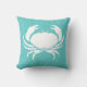 part of the ocean theamed decore CRAB WHITE on teal blue pillow on one side and teal and white strip on back.