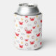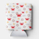 A happy crab mascot with big eyes. He is posing with his big claws up in the air, but is very friendly and cute.
