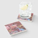 The coasters are gorgeous, a quality feel and heavy weight. They look like a precious archeological find. A rustic stone juxtaposed with a modern floral black and white print. I like the way the print goes slightly imperfect on the cut stone edges giving them a kind-of natural beauty.