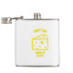 The flask itself is fine. It’s a cheap flask, obviously bought in bulk, however am prepared to overlook that. Given that it is a personalized item, I would have liked to have seen gift boxing instead of the generic packaging. Terrible printing, and/or quality. It’s a cheap, tacky vinyl. It is not cut straight and is also applied in a way that it is overhanging the bottom, causing the glue to catch on items and it will eventually roll and tear, damaging the wrap.