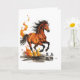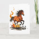 A vivid, high-energy illustration: a powerful chestnut horse bolts forward, every muscle taut and lit with warm highlights. A mix of orange and red, and the mane and tail are rendered like streaks of flame, tossing wildly and amplifying the sense of speed.