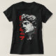 Elevate your alternative wardrobe with this striking "Cracked Classical Bust Trash Polka Art Women's T-Shirt." The design features a highly detailed, high-contrast illustration of a classical-style sculpture bust. The marble face is severely cracked and weathered, gazing intensely to the side. Dramatic, abstract bright red paint splatters explode across the artwork, contrasting sharply with the intricate technical schematic lines and geometric patterns in the background. Bold red abstract typography frames the left side of the composition. This graphic perfectly captures the aggressive, raw energy of classic Trash Polka tattoo art applied to classical statuary. Printed on a comfortable, flattering women's fit tee, it's perfect for everyday wear. An essential piece for gothic, punk, or street style fans.