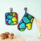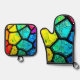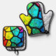 Cracked Rainbow Stained Glass Art Oven Mitt & Pot Holder Set