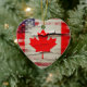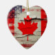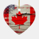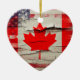 Decorate your tree with this grunge heart-shaped ornament with a print of the American flag fused with the Canadian flag on rustic wood with paint peeling off.