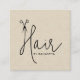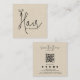 This business card design features a craft paper background with customisable typography and a QR code. Small black scissors a perfect card for a hair stylist.