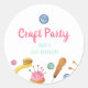 Craft Party Stickers. This fun design is created with scissors, yarn, and thread on a white background. The background of the design is set to white but it can be changed to any colour you would prefer.