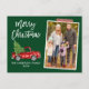Modern Brush Script Watercolor Vintage Red Truck with Christmas Tree Merry Christmas Family Photo Postcard - Forest Green, Craft Tape