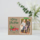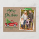 Modern Brush Script Watercolor Vintage Red Truck with Christmas Tree Merry Christmas Family Photo Postcard - Rustic Kraft Paper, Green Snowflake Craft Tape
