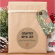 A personalized "crafted with joy" sticker on a kraft colored background. Make it yours by adding your own name. A lovely finishing touch for all of your gifts.