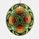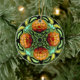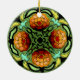 This vibrantly-coloured round ceramic ornament features an original digital painting of highly stylised chrysanthemums & tulips, in the rich and bold colours of the earth by artist, Leslie Sigal Javorek, inspired by the "Arts and Crafts Movement" of the late 1800's. Perfect to use as a hanging fan or light pull - or as a holiday ornament on a tree.