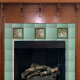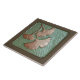 This Gingko leaf tile has a divet - look green background. The ginkgo leaves are metallic copper. The outside frame has a wood look. use this on your fireplace, kitchen backsplash or bathroom. This comes from a handmade tile made by Oregon tile maker Fay Jones Day.
