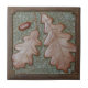 6 inch Oak leaf tile in the Craftsman style for the Bungalow fireplace or kitchen backsplash or Bathroom. Metallic copper and patina green background.