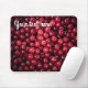 Macro view of red cranberries. Bon Appetit! Have a nice meal! Wild cranberries were probably part of the first Thanksgiving in 1621. - The Indians and English use them much, boiling them with sugar for sauce to eat with their meat, and it is a delicious sauce. (John Josselyn, while visiting New England in 1663) Mouse pad. Customisable. You can change or delete the template text.