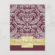 Cranberry Half Damask Gold Save The Date Postcard