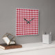 A stylish wall clock with a classic red and white checked gingham pattern design.
