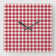 Cranberry Red And White Checked Gingham Pattern Square Wall Clock