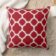 Cranberry Red and White Quatrefoil Pattern Cushion