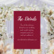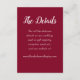 Cranberry Red Simple Style Wedding Details Enclosure Card