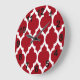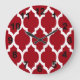 Cranberry Red White Moroccan Quatrefoil Pattern #4 Large Clock