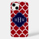 Cranberry Red and White Moroccan Quatrefoil Trellis Pattern #5, Navy Blue Quatrefoil 3 Initial Monogram