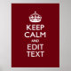 Your personalised Keep Calm saying on a fine custom burgundy accent colour style decor. A personalised Keep Calm style saying on a one of a kind gift. Humourous or whimsical try on your creative words on two editable lines of text. Remember to use CAPITAL letters for best results.