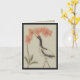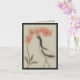 A whooping crane extends its neck upward to reach an oversized orchid in the Asian-inspired design on this note card. The crane is marked with black on its neck and wings and with red on its face and head. The phalaenopsis orchid is pale orange with deep green leaves at the base of its arcing stem. The deep beige background and distressed appearance give the image the look of an antique painting on paper that has faded over the course of time. From my original digitally created image.