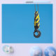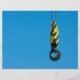 Crane hook with yellow and black stripes hanging flyer